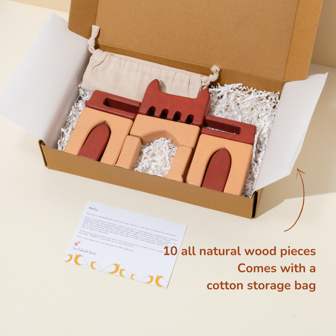 Our 'Indian Monuments' series of wooden stackers is a great opportunity for children to learn more about the wondrous monuments of our great nation. Use them as starting points to help your little ones develop a love for Indian architecture