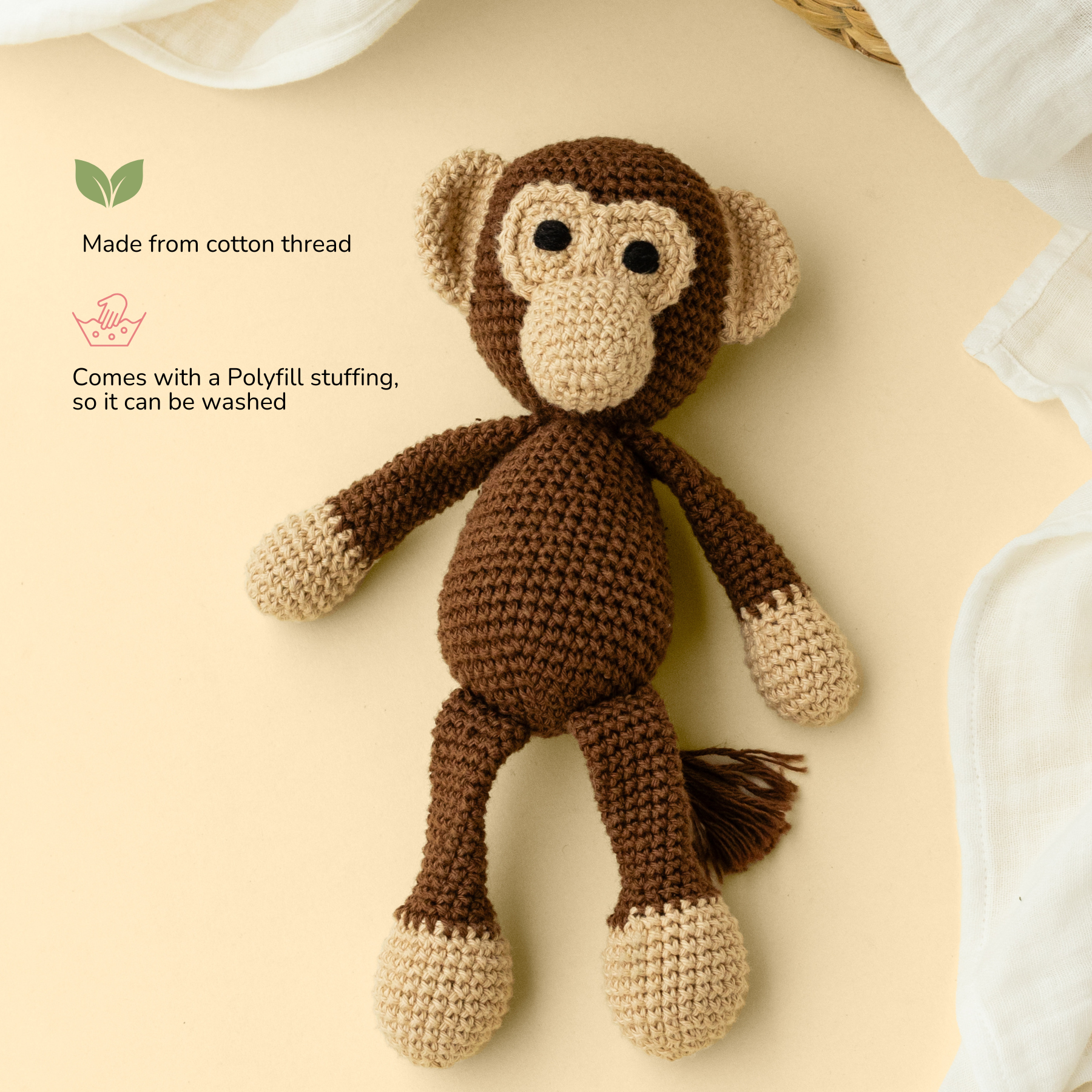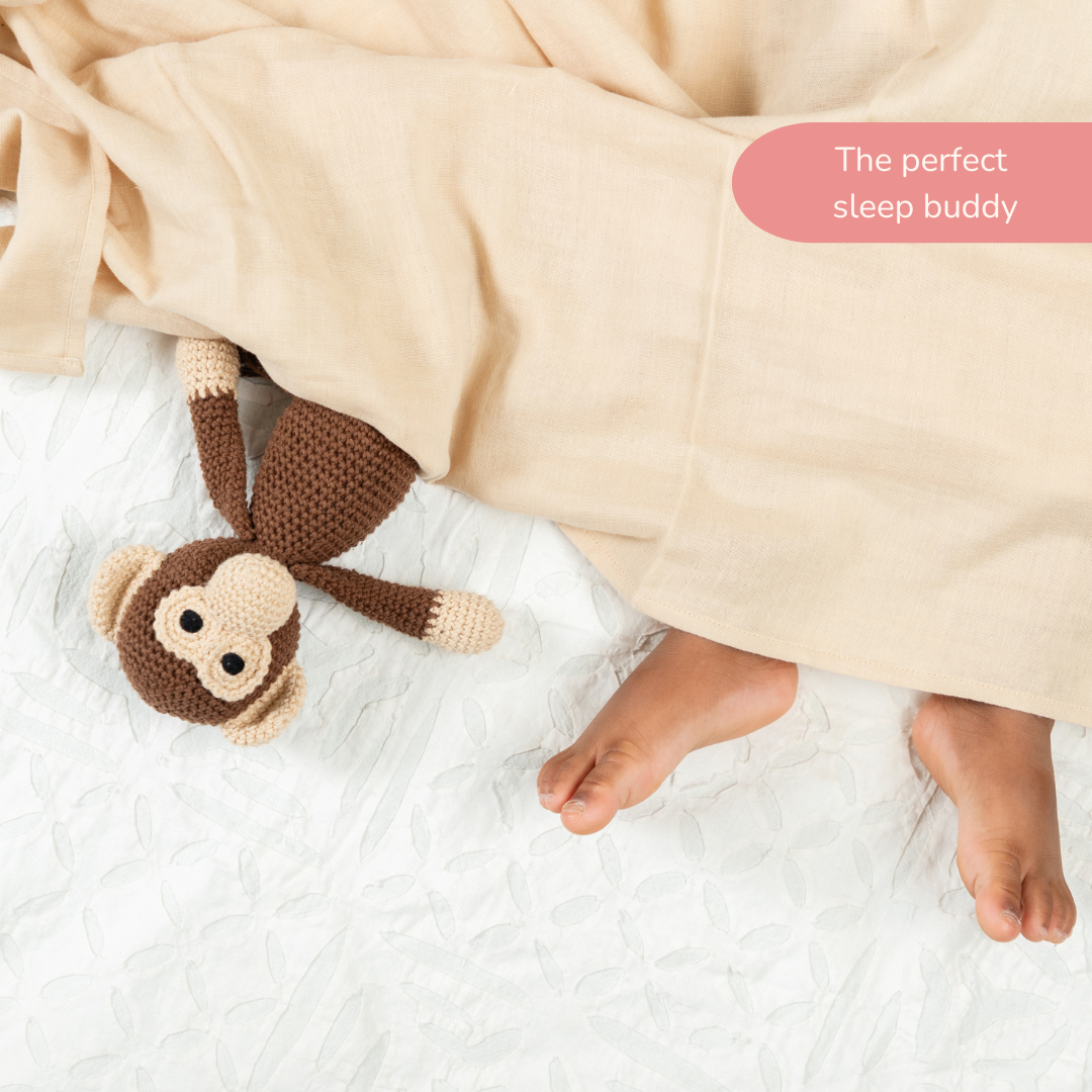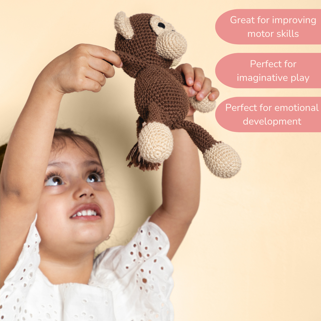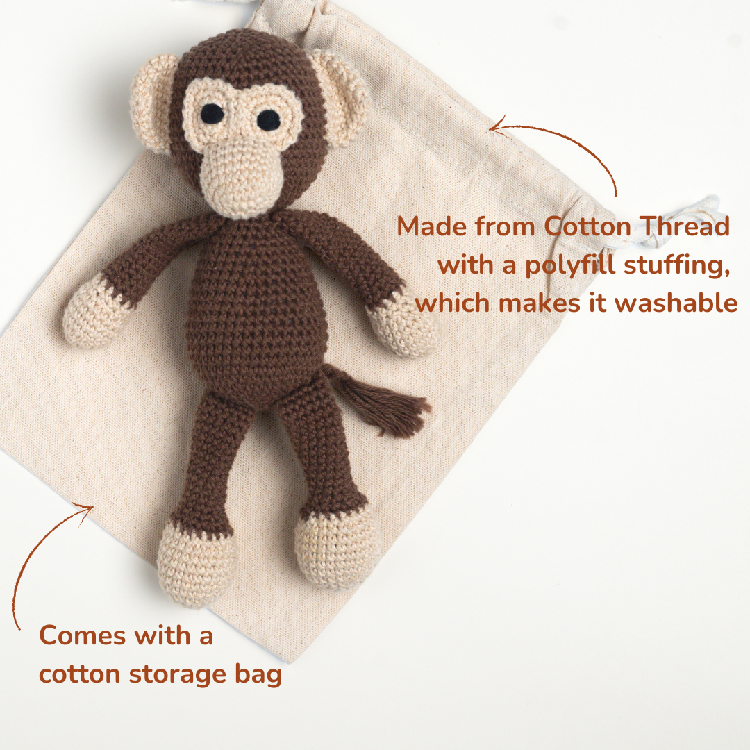 Looking for a little friend for that little monkey at home? Look no further than the Maakad Crochet Monkey Soft Toy! This adorable guy is called the Maakad - that's Marathi / Odia for monkey - and he's hand-crocheted using 100% cotton yarn. Perfect as a soft toy for infants, the Maakad Crochet Monkey can also double up as a sleep buddy. Time to get your little one their first best friend!