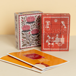 The Gubbachhi Folk Art Series draws inspiration from India's rich legacy of folk arts - where playful fun meets a folksy vibe! This set of 12 wooden puzzle blocks borrows from Madhubani - a folk Indian art form originating from the Mithila region of Bihar, traditionally painted on walls and floors