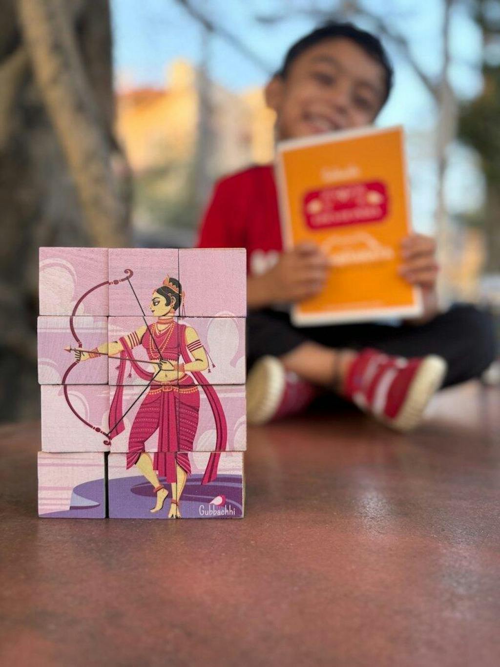 The Gubbachhi Epics of India series celebrates India’s timeless tales. Discover the thousand-year-old legends of the Mahabharata with your little one through this set of 12 all-natural wooden blocks that form 6 puzzles - each unveiling a powerful moment from the epic.