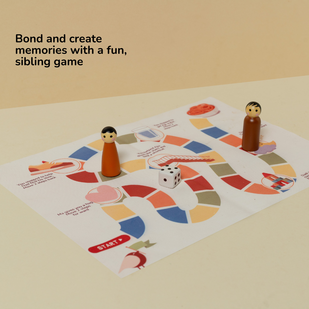 This is a thoughtful gift that celebrates the beautiful bond between siblings. This Raksha Bandhan, get this super-fun Rakhi Gift Set! A beautifully curated gift box that contains - a set of 8 cute wooden family dolls, a pair of handmade crochet rakhis, a fun sibling game with a story and a set of greeting cards to write heartfelt (or silly!) messages to each other.