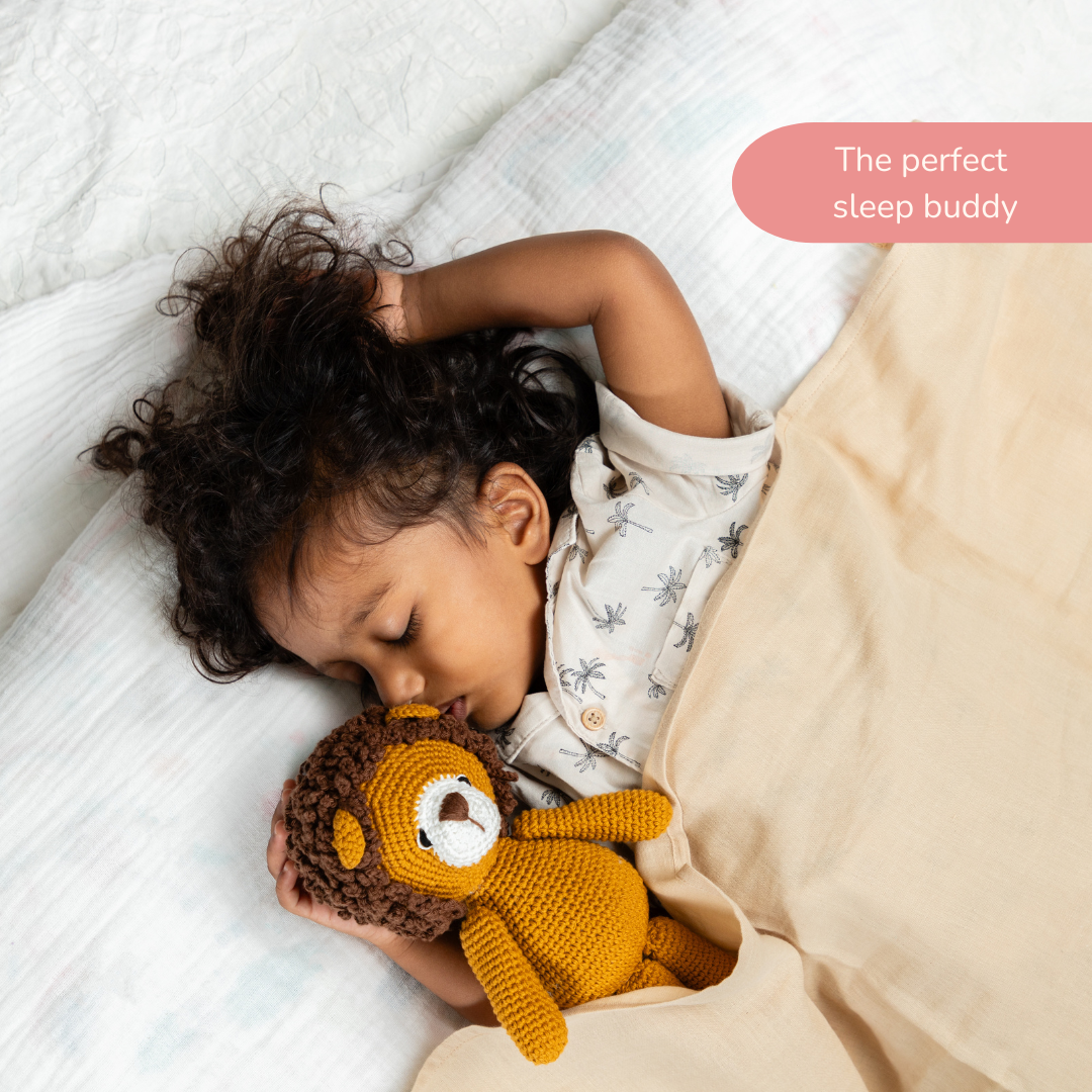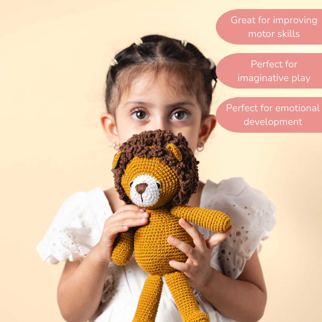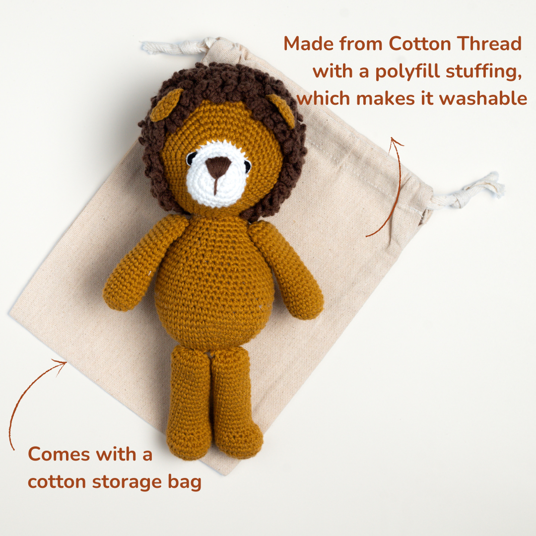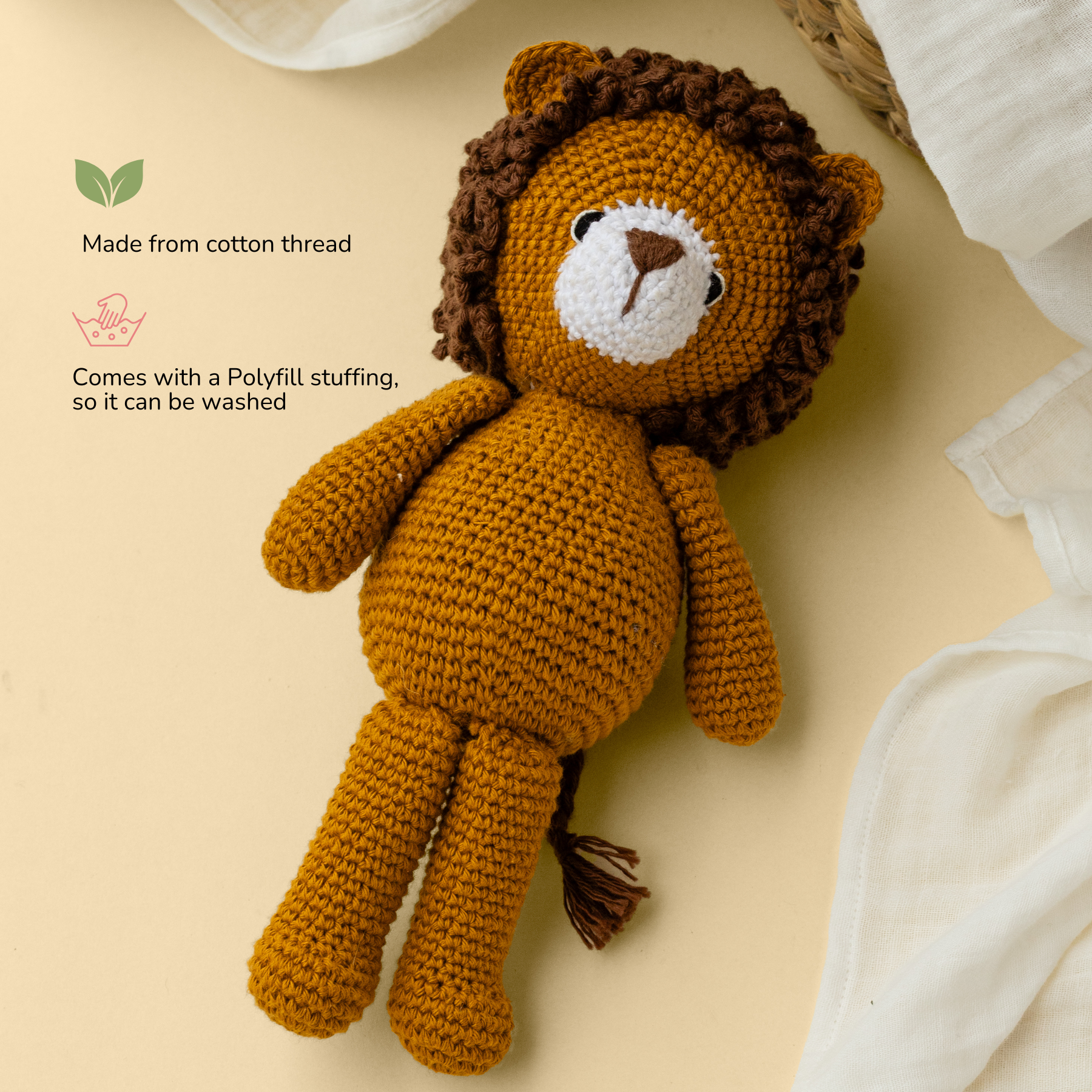 The king of the jungle is here! And he can't wait to meet the other little ruler of your hearts (and your home!) Say hello to Simha, the majestic lion. He's a soft toy and his name is Kannada for lion. Hand-crocheted using 100% cotton thread, the Simha Crochet Lion Soft Toy can also double up as a sleep buddy! Get this ferocious little fellow today! Roarrrr!