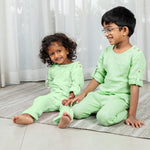 Wrap your little one in comfort with our soothing blue 100% muslin cotton pajama set, crafted for children aged 1 to 5 years. This two-piece set in pastel blue shade, comes with a cozy top and soft bottoms (pants), and is perfect as both loungewear and sleepwear. Made from ultra-soft, breathable muslin fabric, this PJ set is gentle on tender skin and gets softer on each wash.